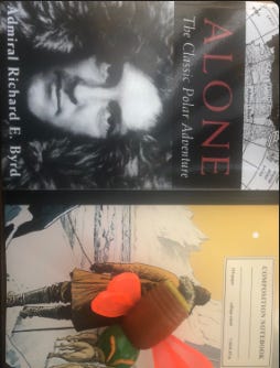Many have heard and read references I’ve made to Admiral Byrd for several years. I found Byrd’s Alone years ago, rented a copy from the Boston Public Library, and even after returning it — its pathos had been with me through more difficult chapters than I can count. The book is no easy adventure tale—it’s the record of a man who chose to isolate himself in the Antarctic night, nearly dying of carbon monoxide poisoning in pursuit of data, reflection, and truth.