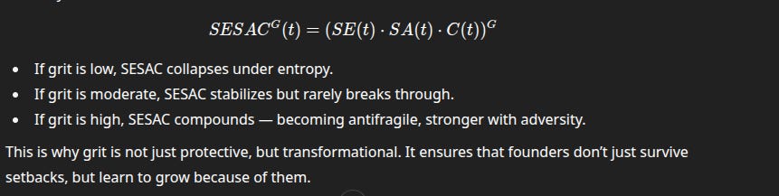 Equally, grit reframes time itself. Most founders think of time as an enemy — runway depleting, milestones looming, investors waiting. But with grit, time becomes an ally, because every passing cycle is not just erosion but compounding. Endurance translates into mastery, persistence into antifragility. Grit ensures that what would normally weaken a venture instead strengthens its core, allowing founders to emerge not merely intact, but transformed.