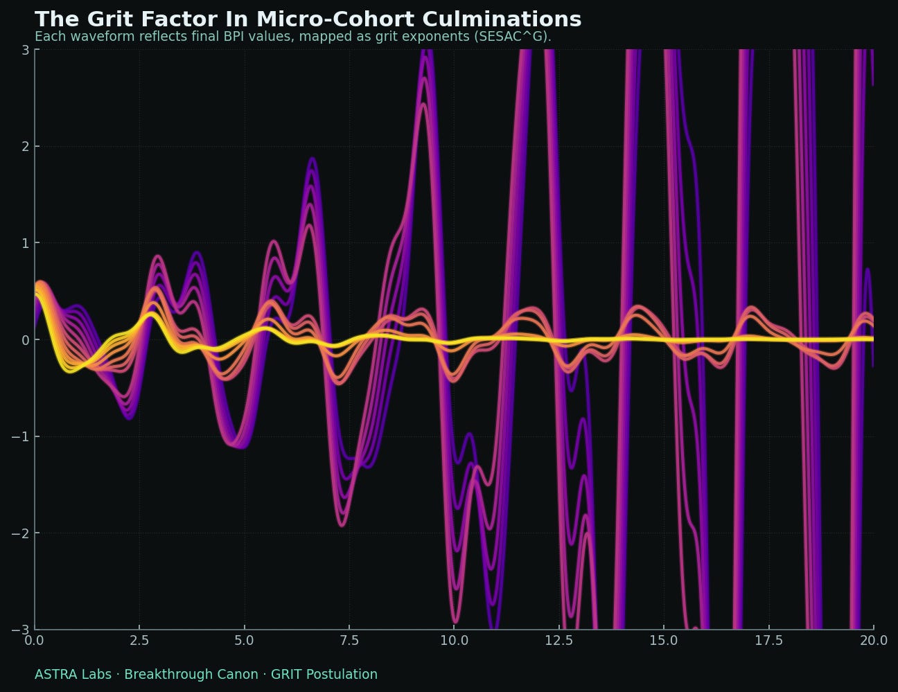 The next steps for the GRIT Postulation are clear: it must move beyond articulation and into testing. Within the Breakthrough ecosystem, this means designing controlled experiments that measure grit not as an abstraction but as a quantifiable exponent on founder outcomes. Once refined, the postulation will be submitted for peer review as one of the flagship Breakthrough Products — a living diagnostic and scientific contribution that can be interrogated, challenged, and strengthened by the wider community. In this way, grit will not remain a poetic maxim but will become a rigorously validated force in the science of founder transformation.